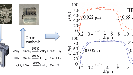 Коллектив ученых из Института общей и неорганической химии им. Н.С. Курнакова РАН, Института общей физики им. А.М. Прохорова РАН и Института физической химии и электрохимии им. А.Н. Фрумкина впервые обнаружил расширение области пропускания во фторцирконатном стекле на 0.035 мкм в ультрафиолетовом диапазоне и на 0.37 мкм в инфракрасном диапазоне при взаимодействии исходной шихты для получения стекол с дифторидом ксенона. Фторидные стекла, обладающие низкочастотным фононным спектром, рассматриваются как уникальная оптическая матрица для введения редкоземельных активаторов...