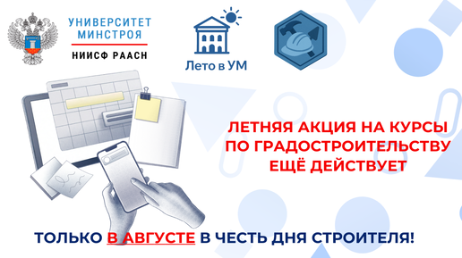 ⏰ ВРЕМЯ УЧИТЬСЯ ГРАДОСТРОИТЕЛЬСТВУ В УНИВЕРСИТЕТЕ МИНСТРОЯ 🤔 По нашей информации, одной из самых популярных тем обучения в Университете Минстроя является градостроительство. И тем приятнее, что именно сейчас слушатели могут пройти образовательные программы по этому направлению на специальных условиях в рамках акции «Лето в Университете Минстроя» ✔️ До конца августа действует сниженная стоимость: переподготовка — 55 000 рублей вместо 64 900, повышение квалификации — 25 000 вместо 34 900, семинары...