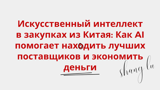 Китай – мировая фабрика, предлагающая огромный выбор товаров по конкурентным ценам. Но поиск надежного поставщика и выгодные условия – задача не из легких. Традиционные методы, такие как поиск на платформах вроде Alibaba и ручной анализ предложений, отнимают много времени и сил. К счастью, искусственный интеллект (AI) упрощает процесс закупок, делая его быстрее, эффективнее и выгоднее. В этой статье мы рассмотрим, как AI помогает находить лучших поставщиков в Китае и экономить деньги, а также представим обзор наиболее полезных AI-инструментов...
