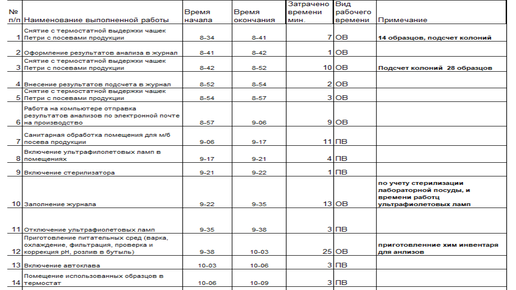 Исследование рабочего времени - образцы документов