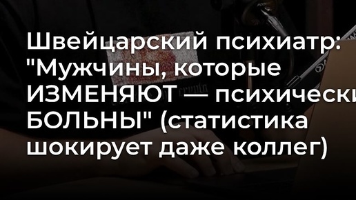 О научном исследовании Доктор Ханс Мюллер, ведущий специалист Женевского института психического здоровья, представил результаты уникального исследования, которое проводилось на протяжении 20 лет. В исследовании приняли участие 12 000 мужчин разных возрастов и социальных групп. Основные выводы исследования Главный результат работы доктора Мюллера опровергает распространенное мнение о том, что мужская неверность является естественным проявлением природы. По данным исследования, измены у мужчин напрямую связаны с определенными психическими отклонениями...