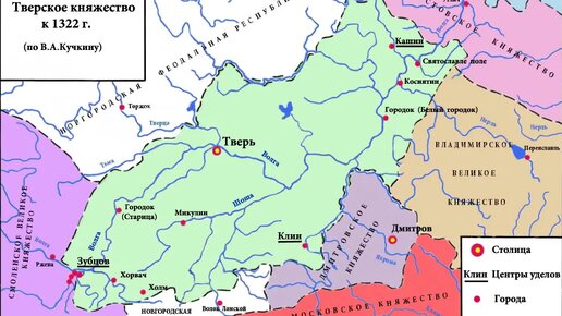 Тверское княжество — удельное (позже — великое) княжество Северо-Восточной Руси со столицей в Твери. Существовало с 1247 по 1485 год. Основная территория сложилась в бассейне Верхней Волги и её притоков. На западе княжество граничило со Смоленским княжеством, на северо-западе — с Новгородской республикой, на востоке — с Угличским княжеством и Владимирским великим княжеством, на юге — с Дмитровским княжеством и совместными владениями Новгорода и владимирских великих князей в районе Волока (Ламского) (ныне Волоколамск)...