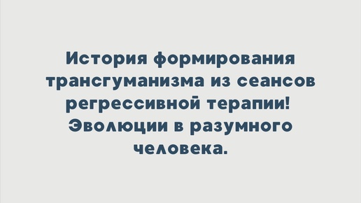 История формирования трансгуманизма из сеансов регрессивной терапии!