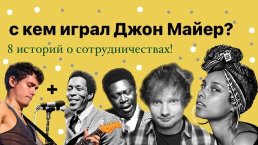 Джон Майер - потрясающий гитарист, музыку которого я готов слушать часами! Он известен своими блюзовыми наклонностями, интересными сотрудничествами с другими артистами, волшебными импровизациями и прекрасными вокальными данными! Он играет не только свою музыку, но ещё часто его можно встретить на джемах и в компании других выдающихся музыкантов! Сегодня я вам расскажу, с какими именно (неожиданными) творческими товарищами он записал песню, вместе выступил или каким-либо другим образом посотрудничал!...