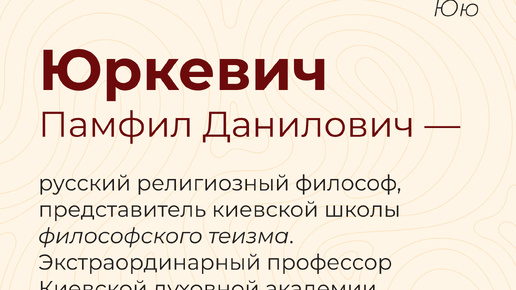 ЮРКЕВИЧ Памфил Данилович (16(28) февраля 1826, с. Липлявое Полтавской губ. – 4(16) октября 1874, Москва)) – русский религиозный философ, представитель киевской школы философского теизма. Экстраординарный...