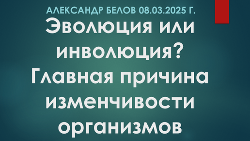 Эволюция или инволюция? Главная причина изменчивости организмов. Александр Белов 08.03.2025 г.