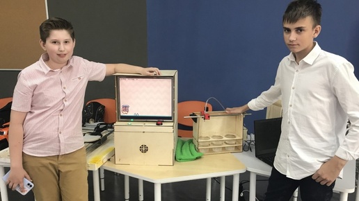 Ямальские школьники и их наставники приняли участие во всероссийской программе «Шаг в будущее». Звездочки науки, причем не только в инженерном деле, из 10 городов и поселков Ямала продемонстрировали свои проекты. Конструктор не игрушка. Робота, измеряющего температуру тела, сделали из «Лего» и уже применяли в надымской школе. Ошибок у него не было, а вот температурящие были. Мы проверяем, как он среагирует на горячий кофе. Он оповещает звуковым сигналом, но в людных помещениях он может быть очень тихим, поэтому придумали оповещение красным флажком...