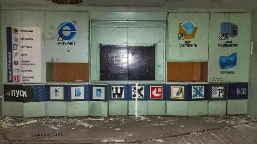 В Екатеринбурге, практически в центре города есть одно не очень примечательное здание, которое является бывшим училищем, которое почему-то забросили. Посмотрите, какой аутентичный кабинет информатики там сохранился с настоящими рисунками на стенами с самыми важными иконками времен эпохи Windows XP...