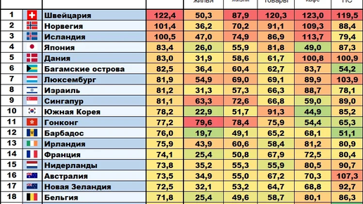 Качество жизни — понятие довольно широкое. Так называемый в народе рейтинг уровня благополучия населения. Индекс качества жизни (чем выше, тем лучше) является оценкой качества жизни в целом. При расчете данного показателя используется эмпирическая формула, которая учитывает индекс покупательной способности (чем выше, тем лучше), индекс загрязненности (чем ниже, тем лучше), индекс соотношения цен на недвижимость и доходов населения (чем ниже, тем лучше), индекс стоимости жизни (чем ниже, тем лучше),...