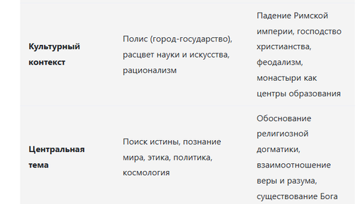 Античная и средневековая философия – два важных этапа в развитии философской мысли. Они существенно различаются по своим целям, методам и основным темам, отражая изменения в культуре, религии и обществе. Вот сравнительная таблица: Подробнее о ключевых различиях: Влияние: Античная философия оказала огромное влияние на развитие европейской науки, культуры и политики. Ее идеи были возрождены в эпоху Ренессанса и легли в основу современной науки и гуманизма...
