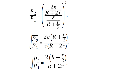 Полное условие задачи При параллельном соединении двух одинаковых источников тока на внешнем сопротивлении выделяется мощность 100 Вт. При последовательном соединении этих же источников тока на внешнем сопротивлении выделяется мощность 196 Вт. Какая мощность будет выделяться на внешнем сопротивлении при подключении к нему одного источника тока? Краткое условие задачи Решение задачи При параллельном соединении источников тока их общее ЭДС равно ЭДС одного источника: а общее сопротивление будет следующим:...