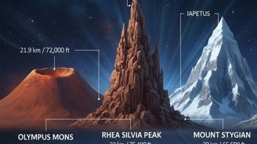 Инфографика: самые высокие вершины Солнечной системы в сравнении с Эверестом