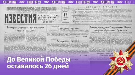 Глубоко опечален известием о смерти президента Рузвельта. Советский народ всегда высоко ценил его дружественное отношение к СССР и его неизменное стремление укрепить боевой союз демократических стран в борьбе против общего врага. Примите выражения моего искреннего участия в вашей тяжелой утрате. Михаил КАЛИНИН От имени советского правительства и от себя лично выражаю глубокое соболезнование правительству Соединённых Штатов Америки по случаю безвременной кончины президента Рузвельта. Американский...