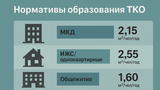 ТКО. Сбор. Нормативы образования ТКО. Разброс нормативов велик, местами нелогичен: в ряде районов сельская местность показывает нормы выше городских значений, что нетипично и требует проверки методики и потоков (возможное «подмешивание» бизнеса, учет растительных/строительных). Внутриобластной разброс зачастую выше межобластного, что указывает на неединообразие практик измерений и учета. По типам жилья чаще индивидуальное жилищное строительство (частный сектор, одноквартирные дома) (Далее: ИЖС) > многоквартирных домов (Далее: МКД), но есть обратные случаи...
