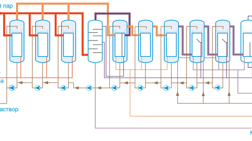 Существуют различные типы испарителей и технологических решений для различных требований. Пластинчатые и трубчатые испарители с падающей пленкой идеально подходят для высоких скоростей испарения, веществ с низкой вязкостью и обычной температурной чувствительности. 1) Многоступенчатое испарение (MEE) При многоступенчатом выпаривании пар жидкой среды используется для нагрева последующих ступеней. В результате можно значительно сократить использование острого пара, а электростанцию можно эксплуатировать с минимальными затратами и энергией...