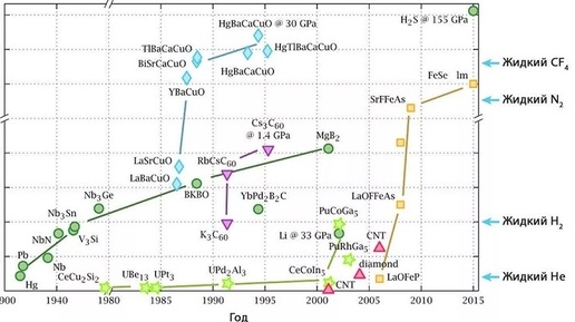 Ученые давно установили, что сложные соединения меди — купраты — ведут себя не так, как прочие металлы. Теперь же американские физики увидели в них новое состояние вещества. Эти материалы открывают возможность создания высокотемпературных сверхпроводников, необходимых энергетике и приборостроению.    Первые высокотемпературные сверхпроводники  В 1911 году физики из Голландии обнаружили, что при температуре, близкой к абсолютному нулю — всего три кельвина, или минус 270 градусов Цельсия, — сопротивление ртути становится нулевым: электрический ток передается через металл без потерь...