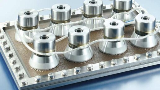 Знаете, как работает ультразвуковой увлажнитель воздуха? Принцип довольно прост: на пластину, которая колеблется с частотой 20 кГц, подаётся вода, и, благодаря этим чрезвычайно интенсивным колебаниям, жидкость моментально разлетается на мельчайшие капельки, превращаясь в пар, а маломощный вентилятор выгоняет его наружу. Всё. А что если увеличить частоту и усилить мощность? Тогда есть вероятность, что такие колебания будут разрушать камни, превращая их в гравий, песок и пыль. Подобные устройства по праву называют дезинтеграторами...