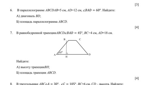 ♥️ ♥️ ♥️ Ответы здесь - https://t.me/addlist/eQDmcUg3_OEwZWZi ♥️ ♥️ ♥️ Ответы здесь - https://t.me/addlist/eQDmcUg3_OEwZWZi ♥️ ♥️ ♥️ Ответы здесь - https://t.me/addlist/eQDmcUg3_OEwZWZi Вариант 2001 Ответами к заданиям 1-5 является целое число или конечная десятичная дробь, которые следует записать в БЛАНК ОТВЕТОВ №1 справа от номера соответствующего задания, начиная с первой клеточки. Каждый символ пишите в отдельной клеточке в соответствии с приведёнными в бланке образцами. Внешний угол треугольника АВС — при вершине С В равен 68°. Найдите величину угла АСВ. Ответ дайте в градусах. В трапеции АВСР известно, что АВ=Ср, В (@ ИВРА=45° и ИВИС =33°...