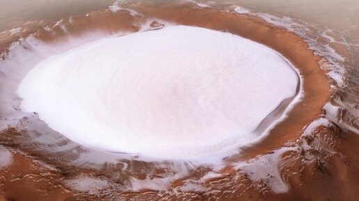 Автоматическая станция Mars Express сфотографировала кратер Королёва. Это природное явление в поперечнике составляет 82 км. Находится кратер в северном полушарии планеты на окраине дюнного поля. Композитная фотография была получена за пять проходов. Панорамный снимок сделан с высоты около 300 км, разрешение – 21 м/пиксель. Рассматривая картинки с Mars Express, создаётся впечатление, что кратер засыпан снегом. Но в действительности это лёд, который образовался благодаря тому, что дно кратера лежит на 2 км ниже окружающего ландшафта...