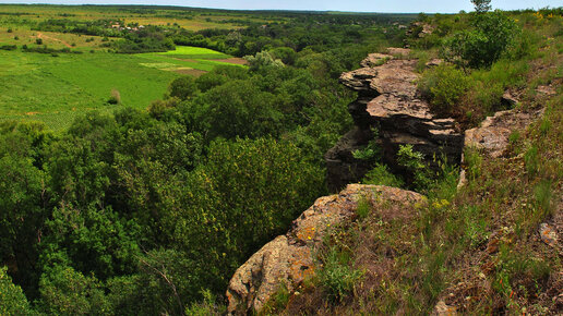 Донецкий кряж уникальное место, возвышенность, образовавшаяся более 1,5 миллиардов лет назад. Размеры кряжа впечатляют - 370х160 километров (23 000 кв.км!), с высотами в пределах 200-300мнум (самая высокая точка - Могила Мечетная - 366 метров, для сравнения - Саур-Могила - 277 метров). Местность характерна холмистостью, большим количеством балок, оврагов и напоминает районы предгорий Крыма, только в миниатюре, со своими хребтами, перевалами и водоразделами. На этих водоразделах и хребтах часто встречается выход наружу каменной породы, самого кряжа...