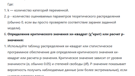 Критерий согласия Пирсона (или критерий хи-квадрат согласия Пирсона) — это статистический критерий, который используется для проверки гипотезы о том, что наблюдаемое распределение категориальной переменной соответствует ожидаемому (теоретическому) распределению. Иными словами, он оценивает, насколько хорошо “подгоняются” наблюдаемые данные к предполагаемой теоретической модели. Когда используется критерий согласия Пирсона: Гипотезы: Процедура проведения критерия согласия Пирсона: Пример: Предположим, вы хотите проверить, является ли игральная кость честной...