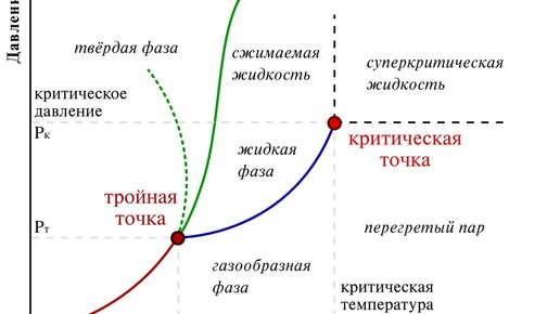 Помимо тройной точки, т.е. сочетания температуры и давления, в котором жидкость, газ и твёрдое тело переходят одно в другое (то есть, вещество кипит, тает и замерзает одновременно), есть ещё одно занятное сочетание температуры и давления, называемое критической точкой. Если мы поместим жидкость в закрытый сосуд и станем нагревать, то она начнёт, во-первых, испаряться, уменьшая массу, а во-вторых увеличивать объём из-за теплового расширения. Как бы там ни было, плотность жидкости будет уменьшаться...