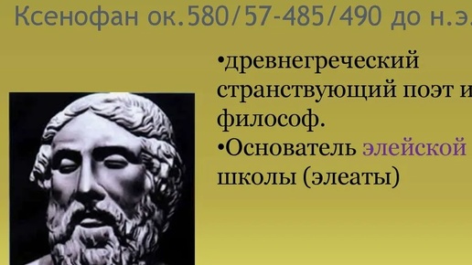 Античный философ, наделённый поэтическим даром, прожил почти век на рубеже VI и V веков до нашей эры. Он родился в семье Дексия в городе Колофоне, расположенном в Ионии. По одним источникам, Ксенофан является основателем Элеатской философской школы, по другим – нет. Но в любом случае, он оказал значительное влияние на её адептов. "Очарованный странник" Когда произошло персидское нашествие, он покинул родные места. Бедный рапсод путешествовал по разным городам Греции, декламируя свои произведения...