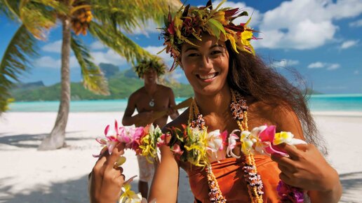 Большая часть населения на островах – полинезийцы. В состав полинезийцев входят несколько народностей, одна из них – таитяне, которые и населяют острова Общества. Все путешественники, начиная со знаменитых мореплавателей Луи Антуана Бугенвиля и Джеймса Кука, отмечали открытый, миролюбивый характер таитян и их грациозную красоту. Художник Гоген был совершенно очарован этими безмятежными людьми. Таитяне совсем не знают, что такое зима, и, чтобы одеться, в прежние времена им было достаточно куска яркой ткани – парео...