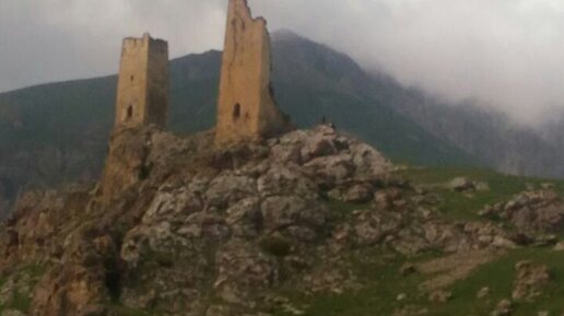 В самом "сердце" Куртатинского ущелья (Северная Осетия-Алания) расположено высокогорное селение Цмити, над которым находятся оборонительные башни Габисовых (возникли в XIV-XV веках). Башни являются архитектурными памятниками федерального значения. Есть легенда, что изначально одна из башен принадлежала Цагараевым, но потом, что-то пошло не так, они стали "кровниками" Габисовых, а после их примирения обе башни стали принадлежать последним. На первой фотографии представлен вид на башни со стороны селения Цмити...