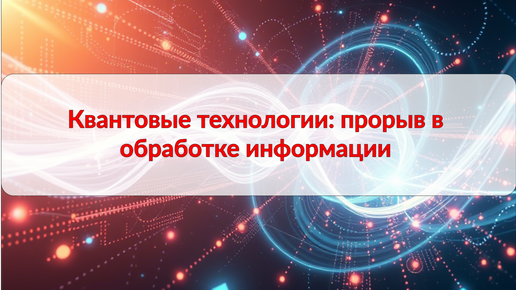Квантовые технологии: прорыв в обработке информации