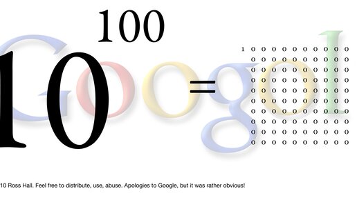 Название компании Google является искажённым написанием слова «гугол» (англ. googol). Создатели известной поисковой машины хотели использовать термин «googol» в качестве названия, но при регистрации выяснилось, что такой домен уже занят. Многие интернет-сервисы компании Google имеют в обратной зоне DNS записи, оканчивающиеся суффиксом «1e100.net», что является вариантом написания числа «гугол» в экспоненциальной нотации (единица, умноженная на 10 в степени 100). Гугол (от англ. googol) — это число десять в сотой степени, то есть единица со ста нулями...