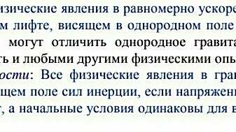 Привожу одну из формулировок принципа эквивалентноси: А что из себя представляет " поле сил инерции"? Рассмотрим все случаи поведения объекта в лифте, при отсутствии внешнего грвитационного поля. 1. Лифт неподвижен. Наблюдатель выпускает объект из руки. Так как кроме очень слабого взаимодействия между корпусом лифта и объектом, которым мы пренебрегаем, никаких воздействий на объект не наблюдается, а следовательно нет и никаких сил, то объект будет просто "висеть" в той точке пространства лифта, в которой его выпустил наблюдатель, то есть его координаты относительно лифта меняться не будут...