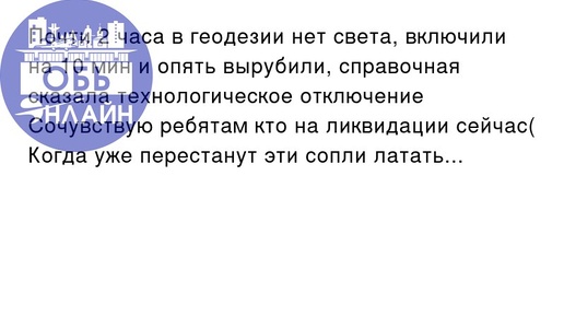 ↗ Почти 2 часа в геодезии нет света, включили на 10 мин и опять вырубили, справочная сказала технологическое отключение