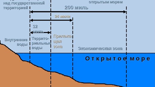У каждого государства есть границы. Но если на суше они вполне понятны хотя бы по художественным фильмам ("Здесь проходит граница"), и можно довольно точно указать, где заканчивается наша земля и начинается чужая, то на море, например, надо отсчитать от берега 22,2 километра - это будут территориальные воды. Затем будет ещё 370 километров исключительной экономической зоны. А дальше - шельф, на который прибрежное государство также имеет право. В общем, всё непросто. А как быть с воздушными границами?...