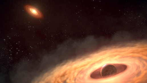 В нашей Солнечной системе восемь основных планет, и более 400 известных лун обращаются вокруг шести из них. Откуда они все взялись? Существует несколько механизмов формирования. Считается, что крупные спутники, такие как четыре галилеевых спутника Юпитера, сконденсировались из газопылевого диска, окружавшего планету во время ее образования. Но это произошло более четырех миллиардов лет назад, и сегодня осталось очень мало «вещественных доказательств». Протопланетный диск Космический телескоп НАСА/ЕКА...