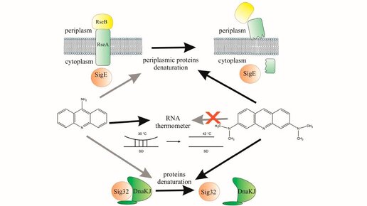 Многие лекарственные препараты вызывают у клетки так называемый тепловой шок — защитную неспецифическую реакцию на стресс. В новом исследовании ученые из МФТИ и Института общей генетики им. Н. И. Вавилова РАН использовали люминесцентные биосенсоры (lux-биосенсоры) и показали активацию белков теплового шока под действием применяемых в медицине красителей (9-аминоакридин и акридин оранжевый). Они помогают лечить инфекции и рак. Несмотря на схожую структуру, механизм действия двух веществ оказался разным...