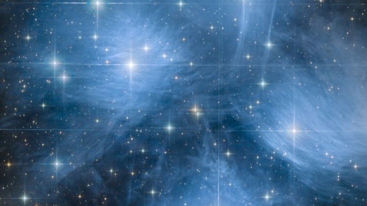 ) Плеяды, также известные как M45, — это ориентир на зимнем небе и одно из самых известных и легко узнаваемых рассеянных звёздных скоплений в ночном небе. Их можно увидеть даже невооружённым глазом. Они находятся в созвездии Тельца на расстоянии около 440 световых лет от Земли. Их название происходит из греческой мифологии: семь сестёр, дочерей Атласа и Плейоны, были преследуемы Орионом, но Зевс защитил их, превратив в звёзды. На самом деле скопление состоит из сотен молодых звёзд, но без оптических приборов можно увидеть только самые яркие из них...