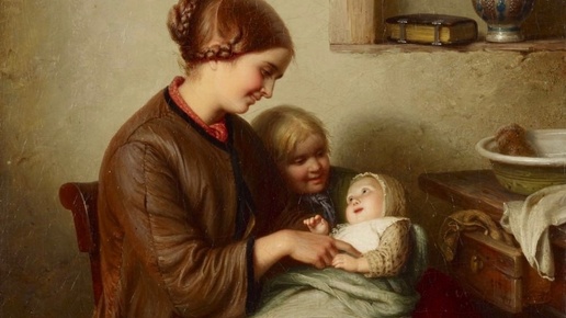 Как семейный портрет XIX века стал предтечей инстаграм-сториз (И почему этот младенец — главный инфлюенсер эпохи бидермейера) Если бы Иоганн Георг Майер писал картины в наше время, его бы закидали подписками в TikTok. Ведь его «Первая улыбка» (1853) — это не просто холст с красками, а готовый гайд по вирусному контенту: трогательный сюжет, эмоциональный хук и даже датировка в стиле «#1853». Представьте: молодая мать, уютная комната, младенец, который только что выдал свою дебютную улыбку, и старшая сестра, чей взгляд явно кричит: «Пап, хватит снимать, я тут третью позу держу!»...