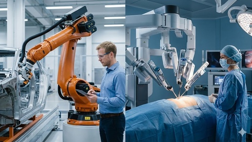Робототехника сегодня: от промышленных манипуляторов до хирургических роботов.