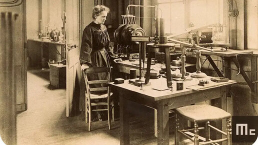 Полуразрушенный сарай на улице Ламон в Париже. Мария Кюри, выполняя работу целого завода, таскает тяжелые мешки, по несколько часов мешает кипящие жидкости в чугунном котле, переливает едкие растворы из одного огромного сосуда в другой, перерабатывая в день по 20 килограмм урановой руды...
