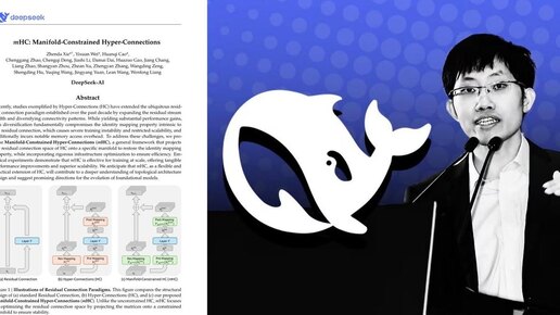 В первый день года команда представила работу, посвящённую одной из самых болезненных проблем современных нейросетей: нестабильности обучения в сложных архитектурах. И предложили решение: подход под названием mHC (Manifold-Constrained Hyper-Connections). Смысл в том, что исследователи взяли мощную, но нестабильную архитектуру Hyper-Connections и ввели ограничения на внутренние связи. 1. Проекция на многообразие (manifold) Вместо того, чтобы оставлять Hyper-Connections свободными, mHC накладывает на них ограничение, они проектируются на особое многообразие (матрицы с особыми свойствами)...