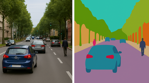 Мы привыкли, что компьютерное зрение может найти лицо на фото или номер машины. Но представьте, что нужно не просто найти объект, а вырезать его по точной форме. Пиксель за пикселем, как ножницами. Для этого существует сегментация изображений — одна из самых мощных и точных технологий в компьютерном зрении. Допустим, у нас есть фотография улицы. Там машины, пешеходы, разметка, дома, деревья. Если использовать классический детектор объектов, он обведёт прямоугольниками людей, машины, велосипеды. Примерно...