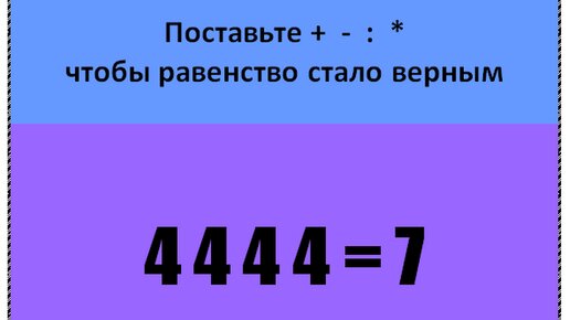 Всем привет, дорогие друзья! Сегодня для Вас новый вид математического логического примера. Наверняка, Вам уже приходилось решать подобные задания, и, вероятно, данный пример Вы сможете решить в течении 30 секунд или даже быстрее. В данном задании необходимо расставить математические знаки + - * : Не обязательно все, возможно, только некоторые из них. А может, некоторые знаки Вы решите использовать несколько раз. Все зависит от того, как Вы решите данный пример. Главное, чтобы после того, как знаки буду поставлены, ответ был равен "7"...