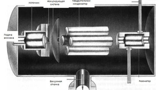 Первый мазер на аммиаке (NH3), изобрели ученые Н. Г. Басов, А. М. Прохоров у нас, и Дж. Гордон, Г. Цайгер, Ч. Таунс за рубежом в 1954 году. Он имел такой вид: Несмотря на его такую сложность в металле, его принципиальная схема очень проста. В источник 1 мазера нагнетается аммиак. Почему аммиак? Наверное, причин много: его много, он дешев, он безопасен и еще много других причин. Это я к тому, что кто-то сидел решал уравнение Шредингера и решение указало на большую вероятность в необходимости именно аммиака...