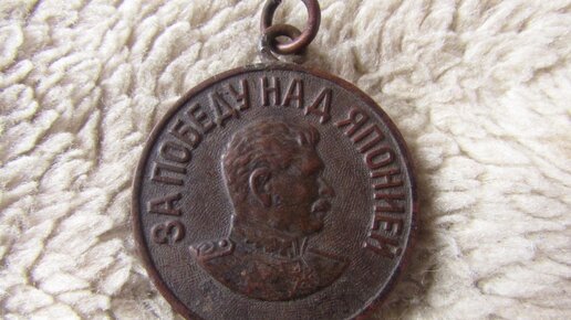 Есть в моем домашнем музее интересная медаль - "За победу над Японией". Откуда взялась эта медаль в моих закромах я совершенно не помню. Может быть нашел где, может быть кто-то отдал. Но она есть. На лицевой стороне медали изображен профиль Иосифа Сталина. Вверху круговая надпись "За победу над Японией". На оборотной стороне надпись в три строки - "3 сентября 1945 года". Вверху изображена небольшая пятиконечная звездочка. Медаль выполнена из латуни. Медалью были награждены все лица, принимающие участие в боевых действиях на Дальнем Востоке...