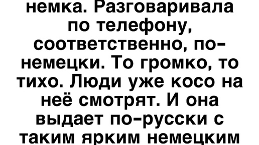 Смешные истории из жизни Работаю водителем автобуса. Села девушка, немка. Разговаривала по телефону, соответственно, по-немецки. То громко, то тихо. Люди уже косо на неё смотрят. И она выдает по-русски с таким ярким немецким акцентом (как в фильмах про ВОВ): "Ооох, Бляять". Смешные истории из жизни Навсегда запомню день знакомства с вузом. Приехала я, новоиспеченная студентка, первого сентября на «линейку» в универ. Волнительно и интересно — вот, где знания, это поможет мне в будущем! Стоим мы...