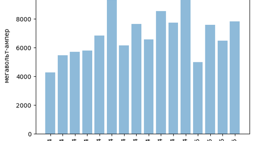 Мы видим, что наибольших значений производство достигло в декабре 2024 года и составило 10 512 мегавольт-ампер...