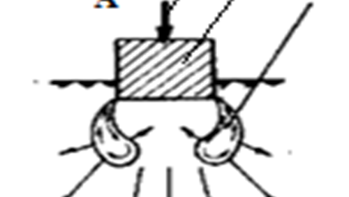 Схема напряженно-деформированного состояния грунтового основания в 1-й фазе, в фазе уплотнения и местных сдвигов, где 1-нагрузка, 2- фундамент, 3- зона сдвиговых деформаций. Для этой фазы, линейно деформируемой, проектировались и должны проектироваться все основания, Для этой фазы, линейно деформируемой, проектировались и должны проектироваться все основания, Для этой фазы, линейно деформируемой, проектировались и должны проектироваться все основания, Это требование заложено в п.5.6.7. действующего СП 22...