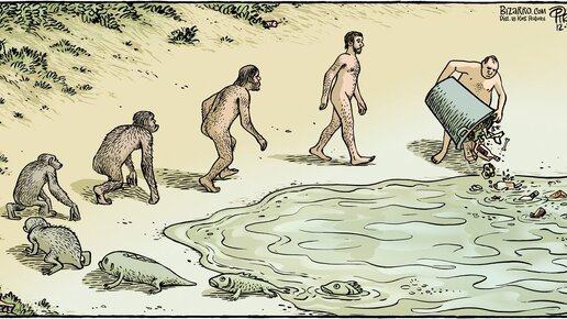 Как известно, эволюция животного мира включает в себя немало различных этапов, но почему-то именно момент выхода рыб на сушу стал очень популярным среди авторов карикатур и веб-комиксов. Над ними и будем сегодня улыбаться, а может быть даже от души посмеёмся. И начнём с, пожалуй, самой известной работы на тему. Зарисовка непревзойдённого художника-карикатуриста Дэна Пираро, автора так называемой синдицированной карикатурной панели Bizzaro. Данная карикатура Дэна переведена на различные языки мира, стала известным мемом и послужила основой для других веб-комиксов...