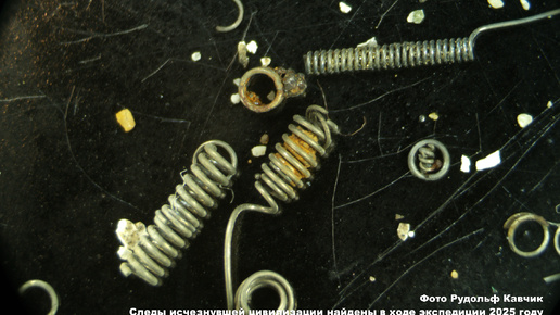 Публикуется впервые. В августе 2025 году проходила поисково-этнографическая экспедиция "По следам старателей", Иркутская область, Бодайбинский район. В ходе экспедиции в руки руководителя экспедиции Кавчика Рудольфа Борисовича попали уникальные артефакты – микроскопические вольфрамовые изделия похожие на пружинки, возраст которых может быть 100 000 лет. Диаметр пружинок 0,5-1 мм, длина от 1 до 5 мм. Следы исчезнувшей цивилизации найдены в ходе экспедиции 2025 году В 1991 году подобные пружинки уже...